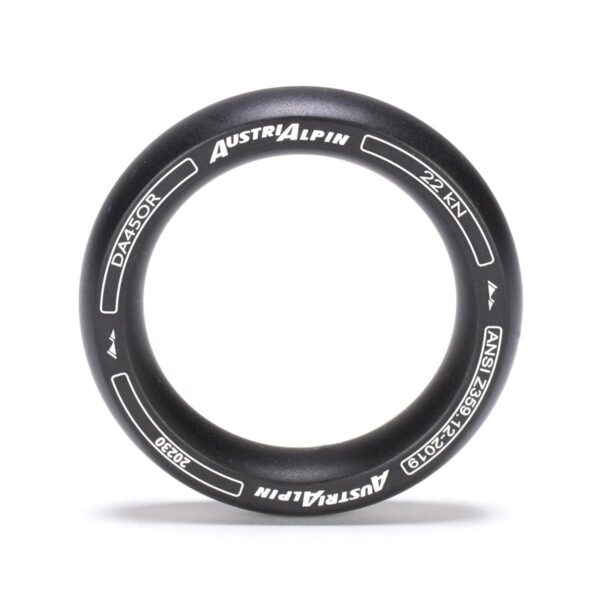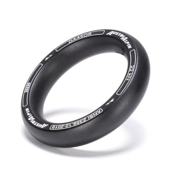 AustriAlpin DA45OR-M-ELOX+L BLACK MATTE anodized round frame O-Ring 22kN for webbing of any size allows the webbing to be distributed at any angle
