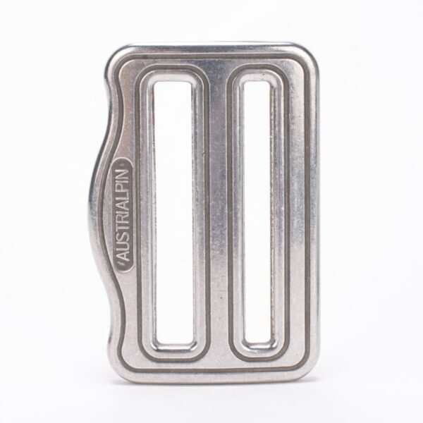 AustriAlpin FC42A SILVER anodized 2-slot window asymmetric buckle for paragliding and parachute harnesses for webbing 45mm
