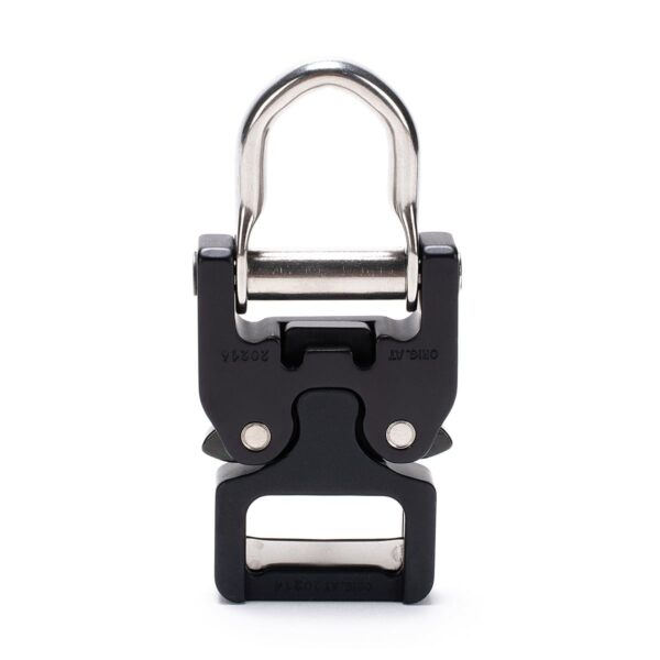 Compared to the COBRA® PRO STYLE 9kN buckle, it has a thicker release mechanism and thicker pins that keep the ears in body. It is not compatible with other buckles and 3 and 4-way panels. The D-Ring is rotating, has a significant resistance when changing position.
