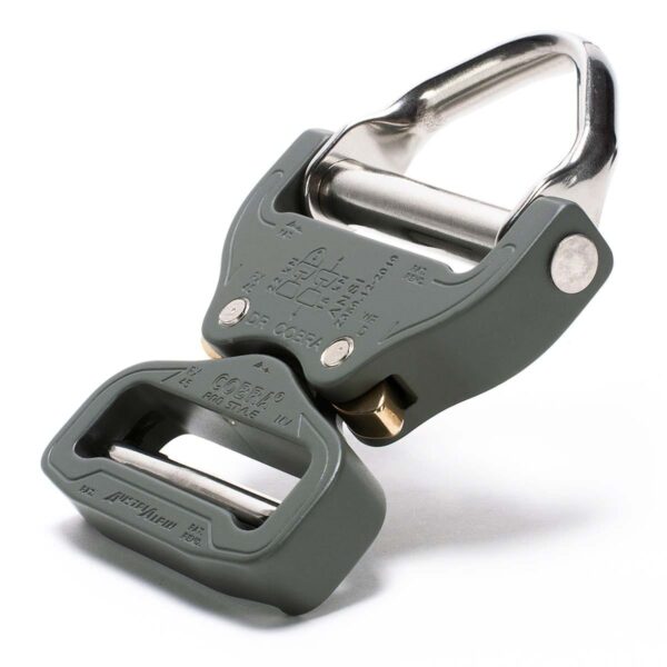 The ANSI COBRA® PRO STYLE, certified according to the American safety standard ANSI, is thicker and even stronger than the COBRA® PRO STYLE. This buckle is marked according to the ANSI norm with a guaranteed tensile strength of 15 kN. However, we guarantee 18 kN for the buckle and 22 kN for the d-ring and point this out in the technical specifications accordingly. Certified according to ANSI/ASSE and upon request NFPA.