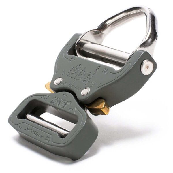 This innovative component is a synergistic hybrid of two standard components of safety industry hardware: the stainless-steel d-ring and the ANSI COBRA® PRO STYLE – a buckle which meets the highest safety requirements for its users. Its unique construction prevents the D-Ring from getting squeezed against the webbing and therefore guarantees easy handling.
