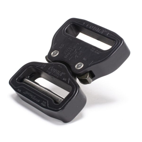 Compared to the COBRA® PRO STYLE 9kN buckle, it has a thicker release mechanism and thicker pins that keep the ears in body. It is not compatible with other buckles and 3 and 4-way panels. The D-Ring is rotating, has a significant resistance when changing position.