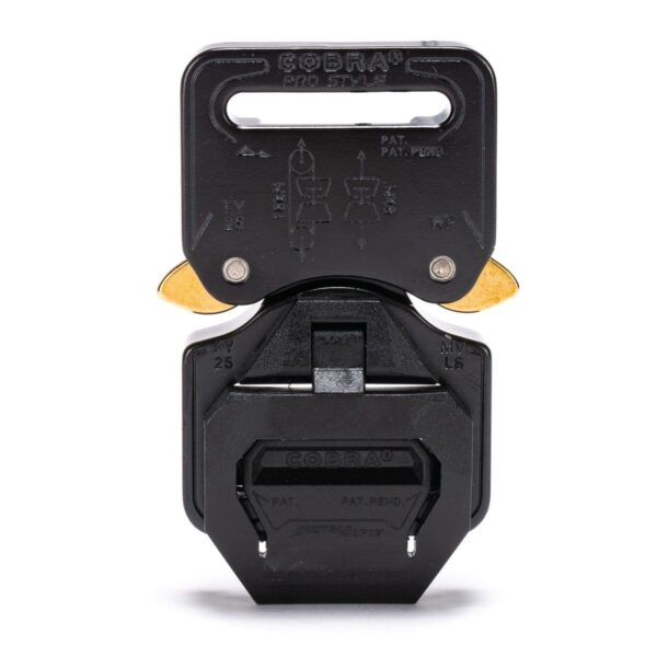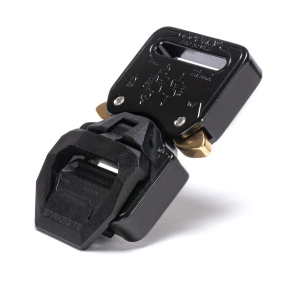 The buckle is equipped with a "SNAKEBITE" clamp, protection against slipping out of the webbing in a loosened state, when the webbing is not tensioned and clamped with a self-tightening beam in the buckle. The SNAKEBITE clamp is made of high-strength polymer.