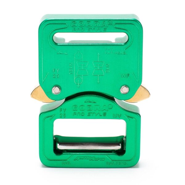 AustriAlpin FY25NVF GREEN anodized 25mm flat metal buckle Cobra® Pro Style 9kN for webbing 25mm