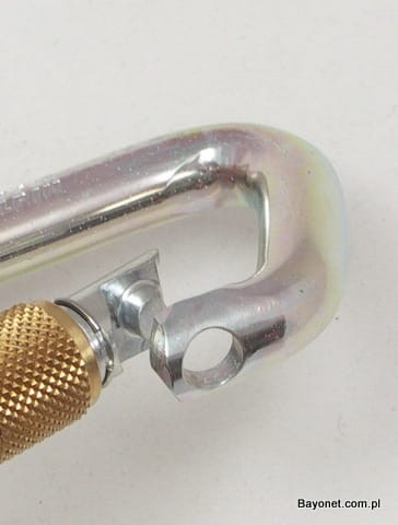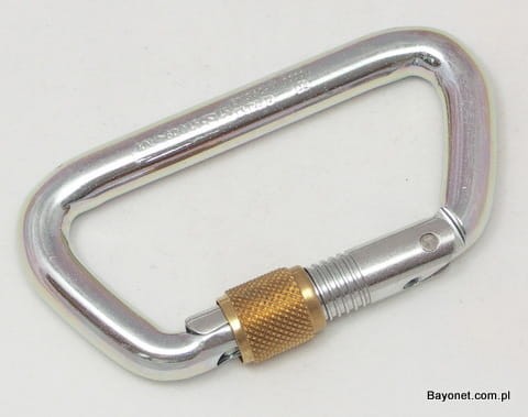 Steel carabiner for nylon and steel ropes.