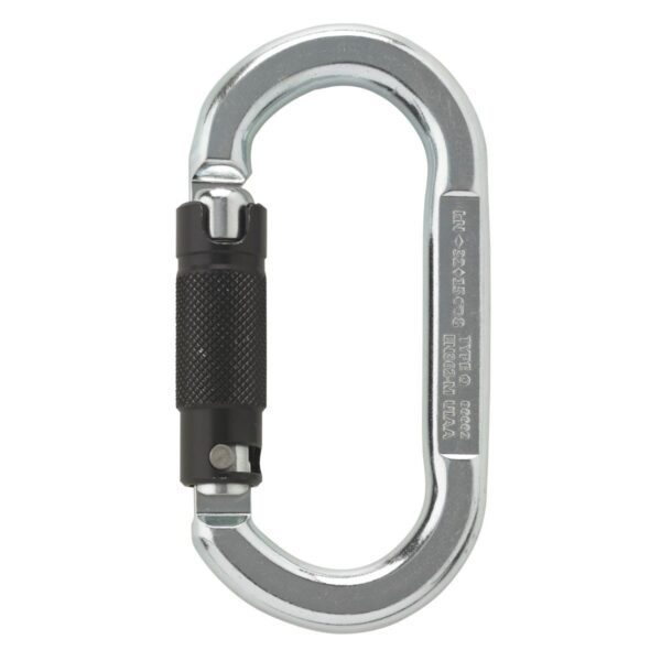Symmetric oval shaped steel carabiner with 2-way autolock.