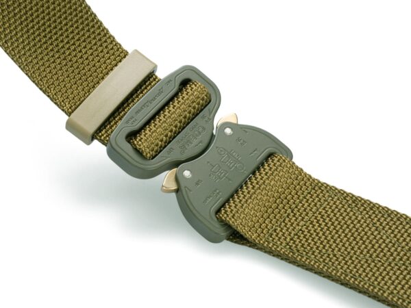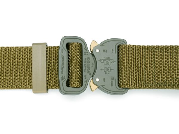 VERY IMPORTANT! The adjustable belt end strap should be braided correctly onto the buckle as shown in the photos, according to the Cobra® buckle manufacturer's recommendations. The end of the belt should be on the outside.