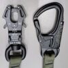 Lanyard is sewn permanently at ends (sewn in loops) with carabiners on both sides: