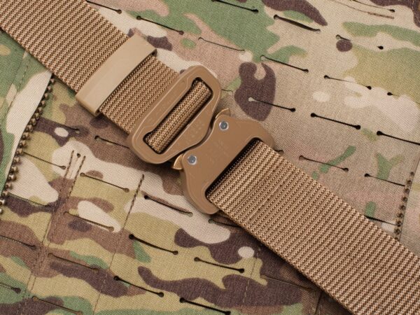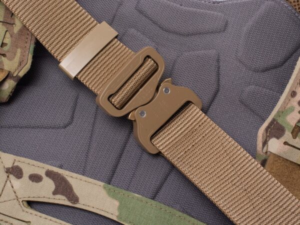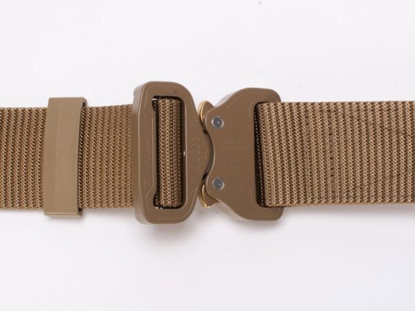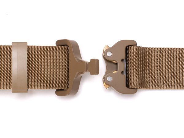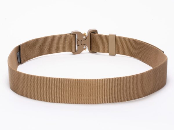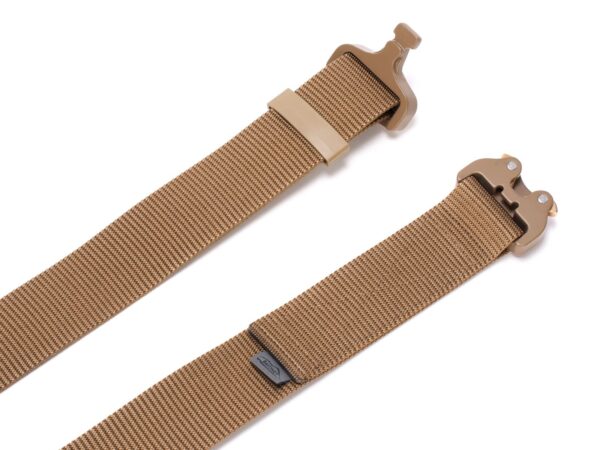 The belt has a new webbing, manufactured especially for Bayonet, which is noticeably stiffer vertically (does not twist under load), and horizontally still provides comfort and adjustment to the figure. The webbing provides better support of the waist circumference when tugging on the belt, but this is paid for by slightly more difficult adjustment of the waist circumference. With Cobra® buckles, the belt circumference adjustment is done once, when putting the belt on the trousers, then the belt is unfastened with the ears on the buckle.