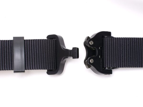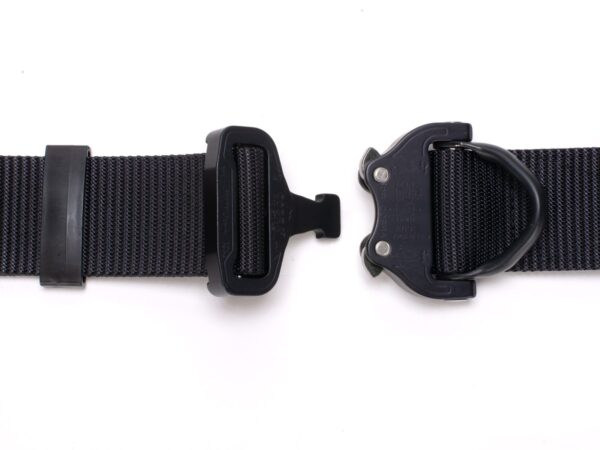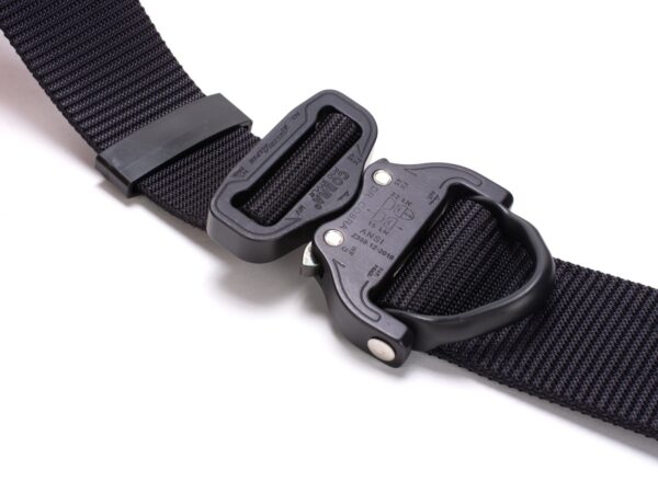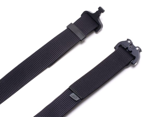 The belt has a new webbing, manufactured especially for Bayonet, which is noticeably stiffer vertically (does not twist under load), and horizontally still provides comfort and adjustment to the figure. The webbing provides better support of the waist circumference when tugging on the belt, but this is paid for by slightly more difficult adjustment of the waist circumference. With Cobra® buckles, the belt circumference adjustment is done once, when putting the belt on the trousers, then the belt is unfastened with the ears on the buckle.