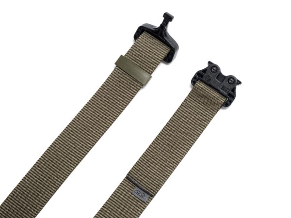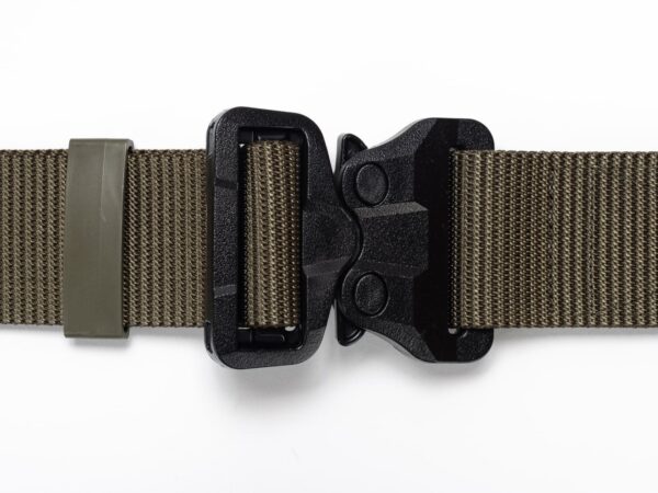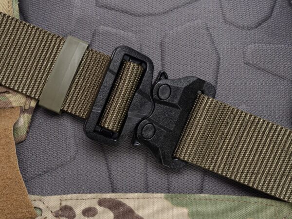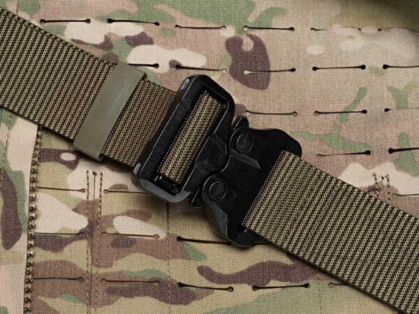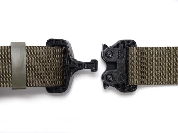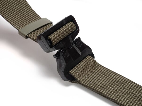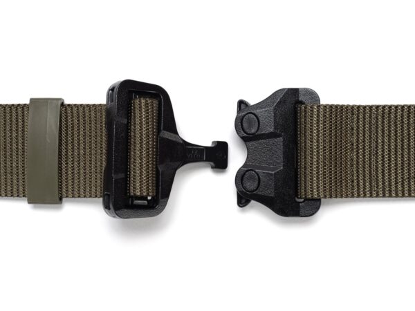 The belt has a new webbing, manufactured especially for Bayonet, which is noticeably stiffer vertically (does not twist under load), and horizontally still provides comfort and adjustment to the figure. The webbing provides better support of the waist circumference when tugging on the belt, but this is paid for by slightly more difficult adjustment of the waist circumference. With Cobra® buckles, the belt circumference adjustment is done once, when putting the belt on the trousers, then the belt is unfastened with the ears on the buckle.