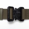 The Cobra® GT buckle is a polymer buckle made by ITW Nexus under license from AustriAlpin GmbH. The reinforced polymer provides 2.5kN tear strength and is resistant to accidental stepping, unlike most plastic belt buckles. Belts of this type are used, for example, by the Air Ambulance Service and guards in places where they often pass through metal detectors.