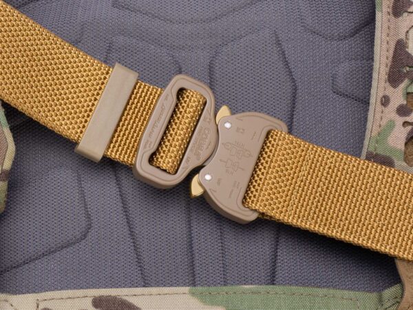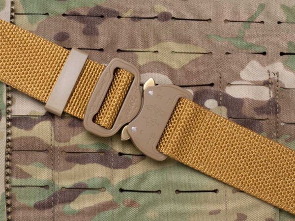 Bayonet BCOM38-GL Pas średnio-sztywny COMBAT Coyote (Złoty) o szerokości 38mm metalowa klamra Cobra® 9kN Rozmiar uniwersalny 70-120cm